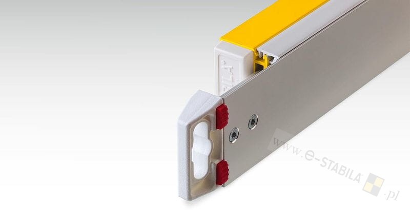 - gumowe stopki na końcu poziomicy zapobiegają zsuwaniu się poziomicy podczas pracy